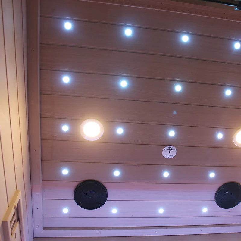 Regular sauna sessions can help improve circulation, promote detoxification, relieve muscle tension, and reduce stress. The Centuraheat outdoor sauna enhances this experience with chromotherapy star lights, helping you unwind while benefiting from colour light therapy.