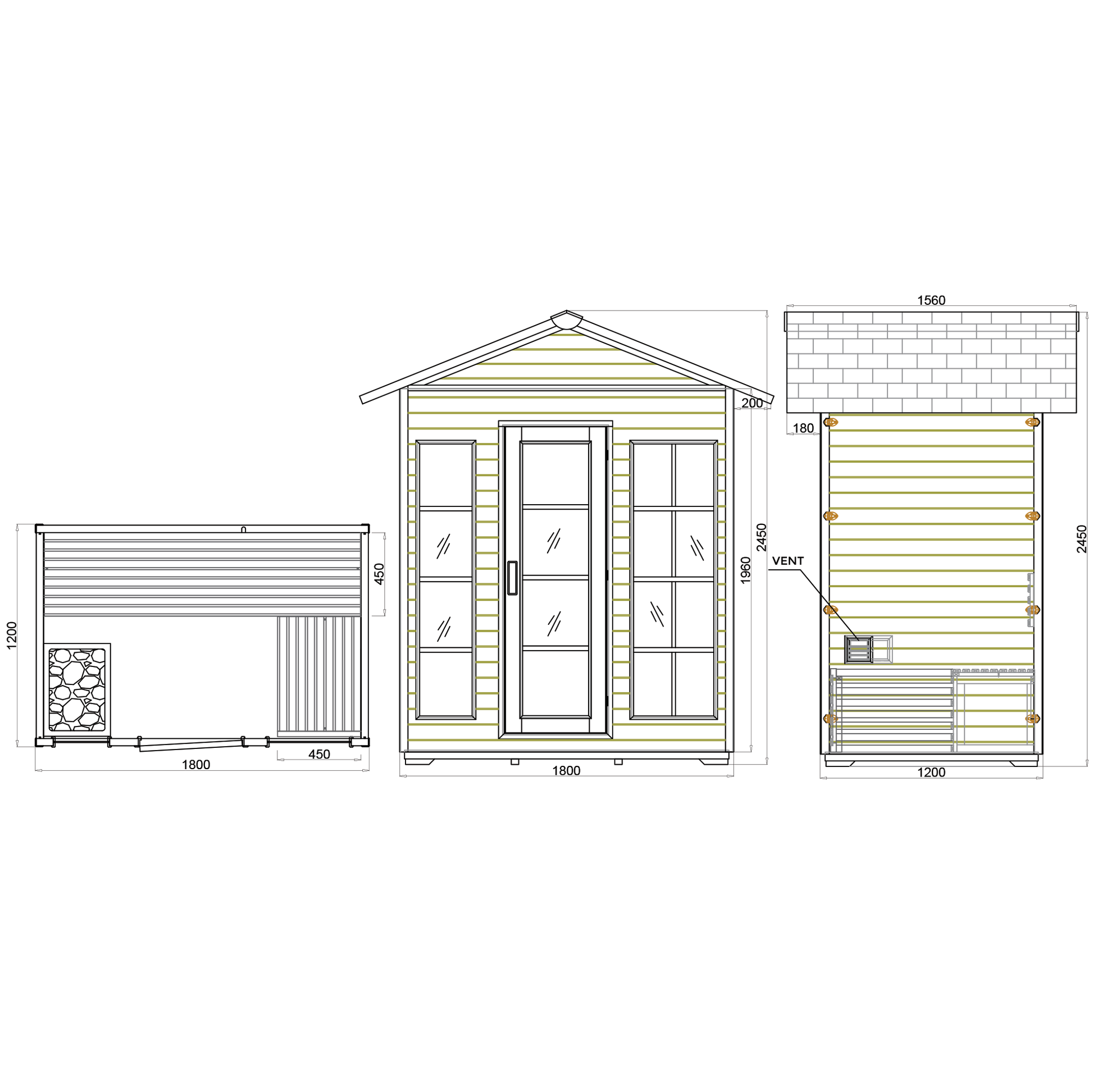 • Size: Width 1800mm x Depth 1200mm x Height 2450mm